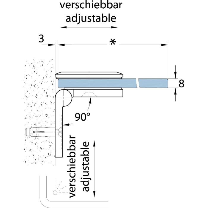 | Montaggio | Glas/Wand 90° |