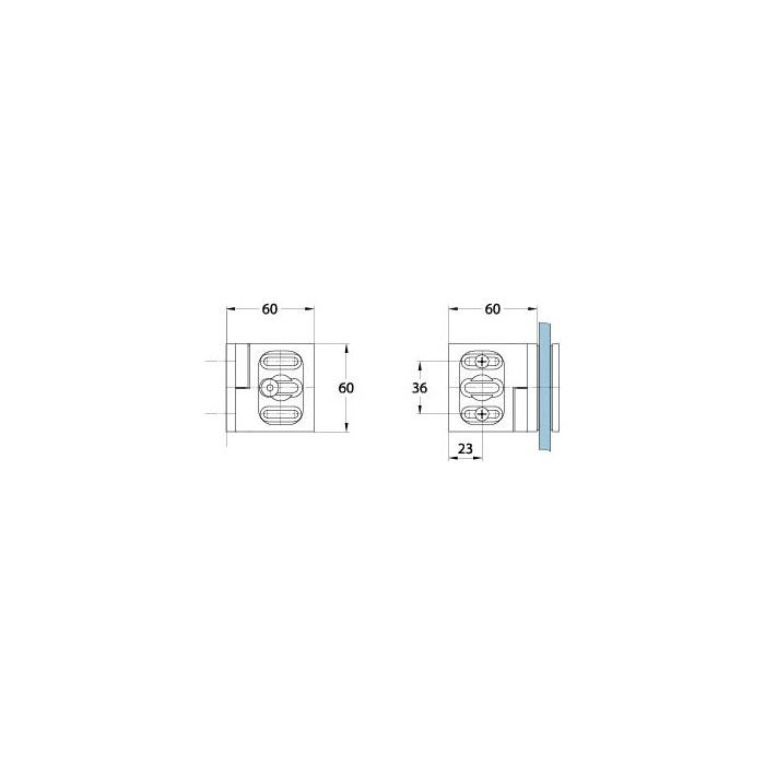 Winkelverbinder Milano Pur mit Langloch, Glas-Wand 90° - 135°, 60 x 60 mm, Messing, verchromt poliert, Glasstärke 8 mm, Glas/Wand 90°