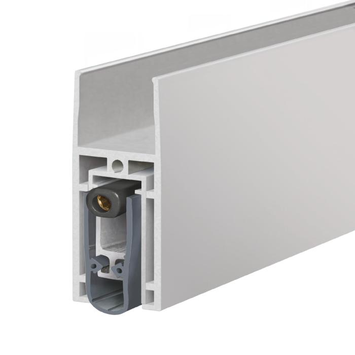 für 1- und 2-flügelige Ganzglastüren, Dichtungshöhe 18 mm, 48 dB Schalldämmwert, rauchdicht, Flüsterdichtung, einseitige Auslösung mit Parallelabsenkung, kein Schleifen, autom. Ausgleich bei schiefem Boden, kann bis zur nächst kleineren Lagerlänge gekürzt werden, inkl. Planet Auflaufplättchen, Typ 1 (Edelstahl), Schrauben und Abdeckplatten, 2 Stk. VHB-Abschnitte (doppelseitiges Klebeband)