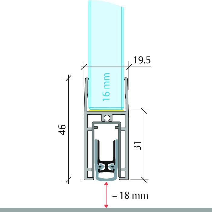 Absenkdichtung Planet KG-F16s, Aluminium, BlackLine RAL 9005 matt, Glasstärke 16.76 mm, zum Kleben, L = 1084 mm