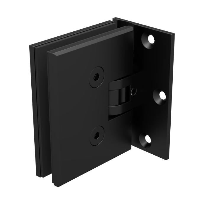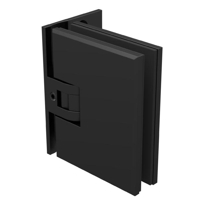 Glastürscharnier Synera, Lasche einseitig, Inox V2A, BlackLine RAL 9005 matt, Glasstärke 8 - 10 mm, Glas/Wand 90°
